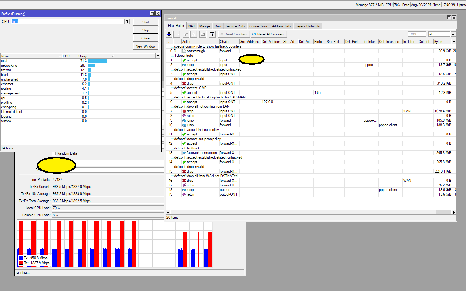 That TCP result's maybe due to your setup, because my RB5009 as PPPoE client on GPON has no problem running speedtest.net with results near 2.3Gbps (IPv6 speedtest number, the with overhead the throughput on the ethernet interfaces is of course higher, a little bit over 2.4Gbps if my calculation is correct, and that's near the GPON download limit). Firewall config is defconf + addititional rules.