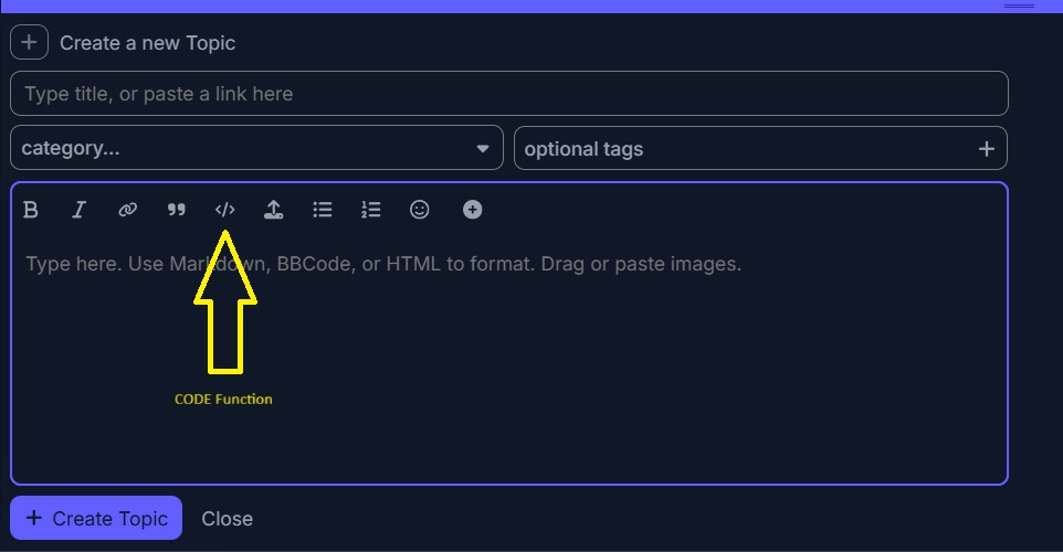 Here we have a window where we write our question and where we can paste our code into our code function. Also there is a preview so we can see how will our post look.
