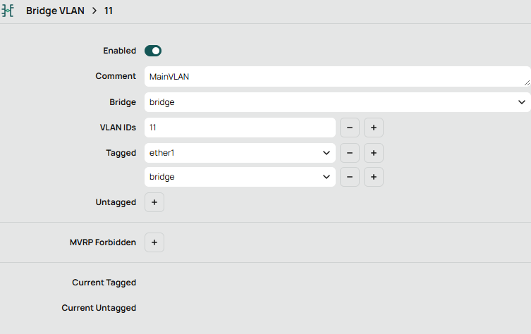 add comment="VLAN 11" interface=bridge name=MainVLAN vlan-id=11