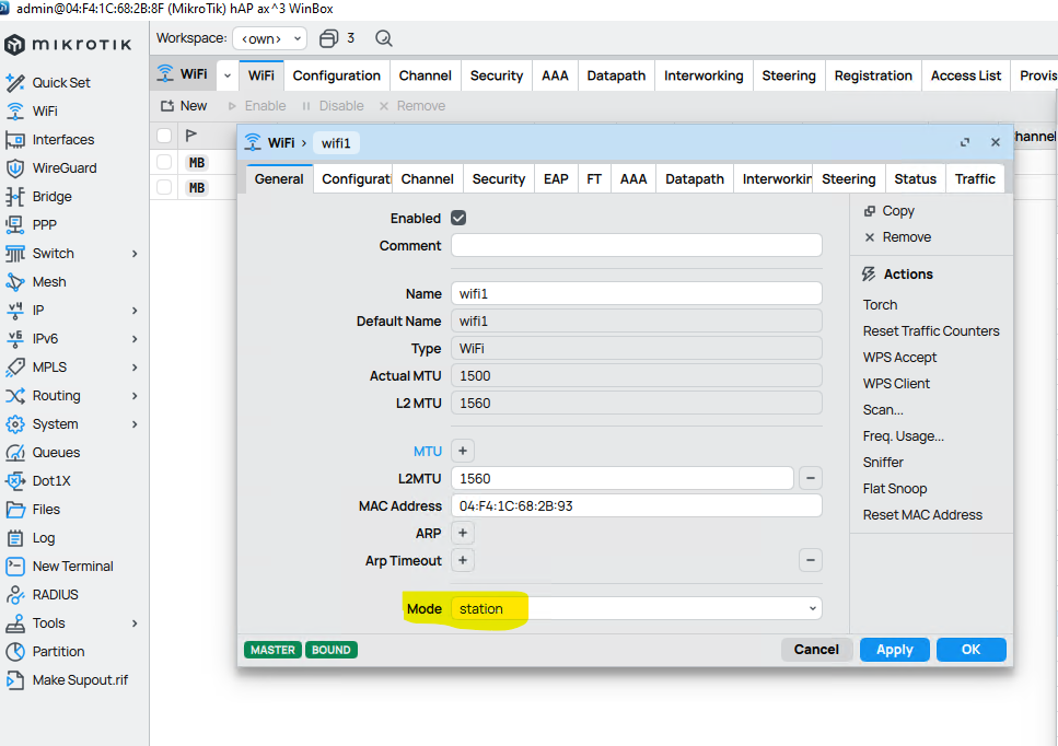 add bridge=bridge comment=defconf interface=wifi1