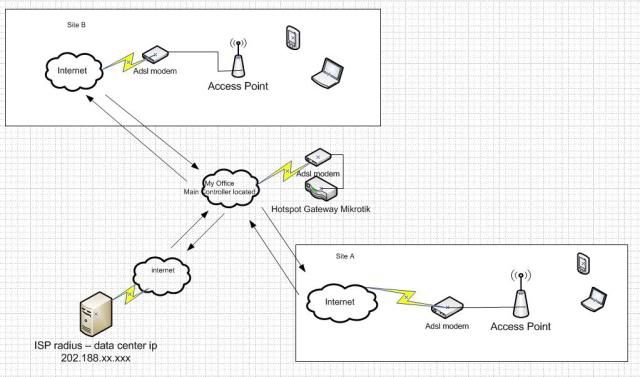 now..my question, can i create a centralised hotspot gateway/controller..only at my sites just plug in AP then view landing page from my hotspot gateway in somewhere using mikrotik..