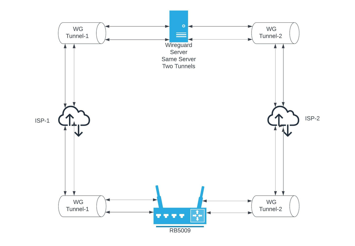 I have two ISPs at home and two Wireguard Tunnels from Server-‘X’(IP:XX.XX.XX.XX). I have upgraded my RB5009 to ROS7.1.5. As it’s now allowed to use same peer’s public key for different interfaces with new 7.1.5 update.