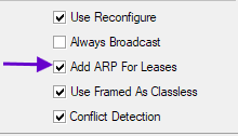 In the DHCP Server setting, turn-on "Add ARP For Leases":