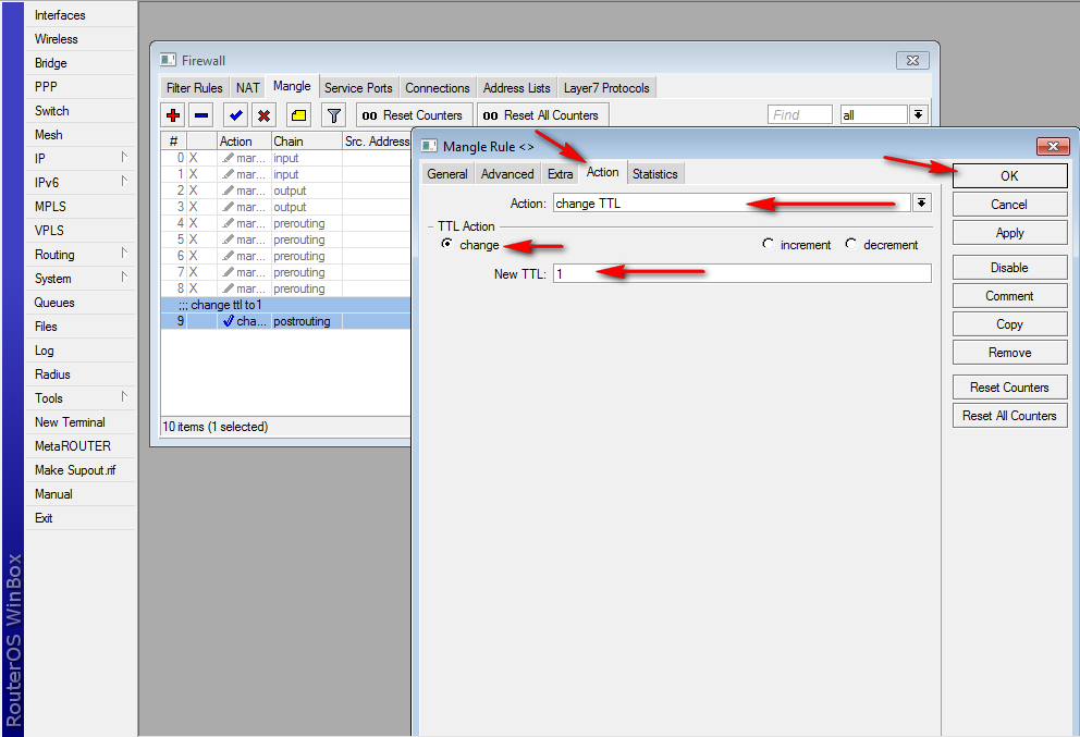 you can see below how can change the TTL equal 1