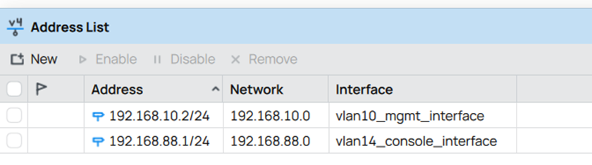 add address=192.168.10.2/24 interface=vlanMGMT network=192.168.10.0