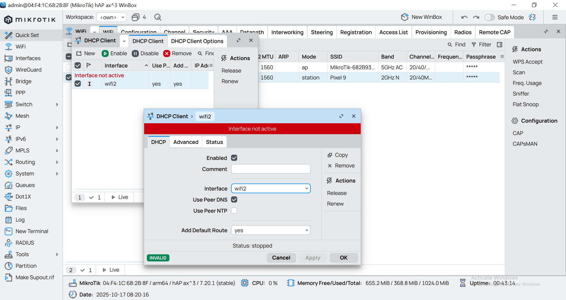 so we are planning to use Mikrotik hAP ax3 module to act as both AP and STA to test our Wifi module.