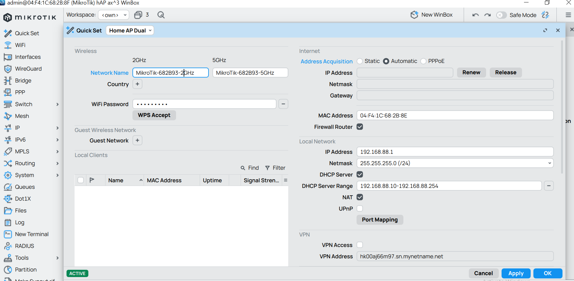configuration.mode=ap .ssid=MikroTik-682B93-5GHz disabled=no