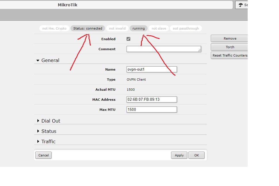 like i said , the connection is up and running “connected” and “running” .