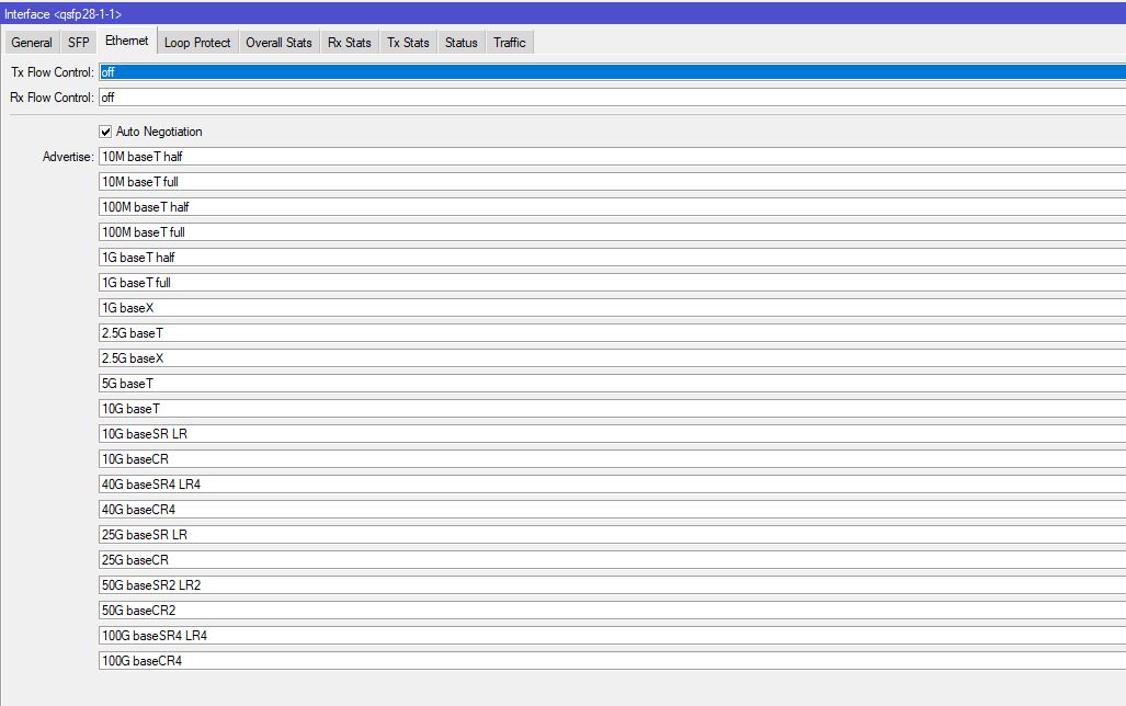 We currently have a CCR2216-1G-12XS-2XQ router in production, which has been operating normally for about seven months. However, over the past two days, we have experienced an issue with the 100 Gb interface, where it repeatedly goes down and then up, creating a continuous link-flapping cycle.
