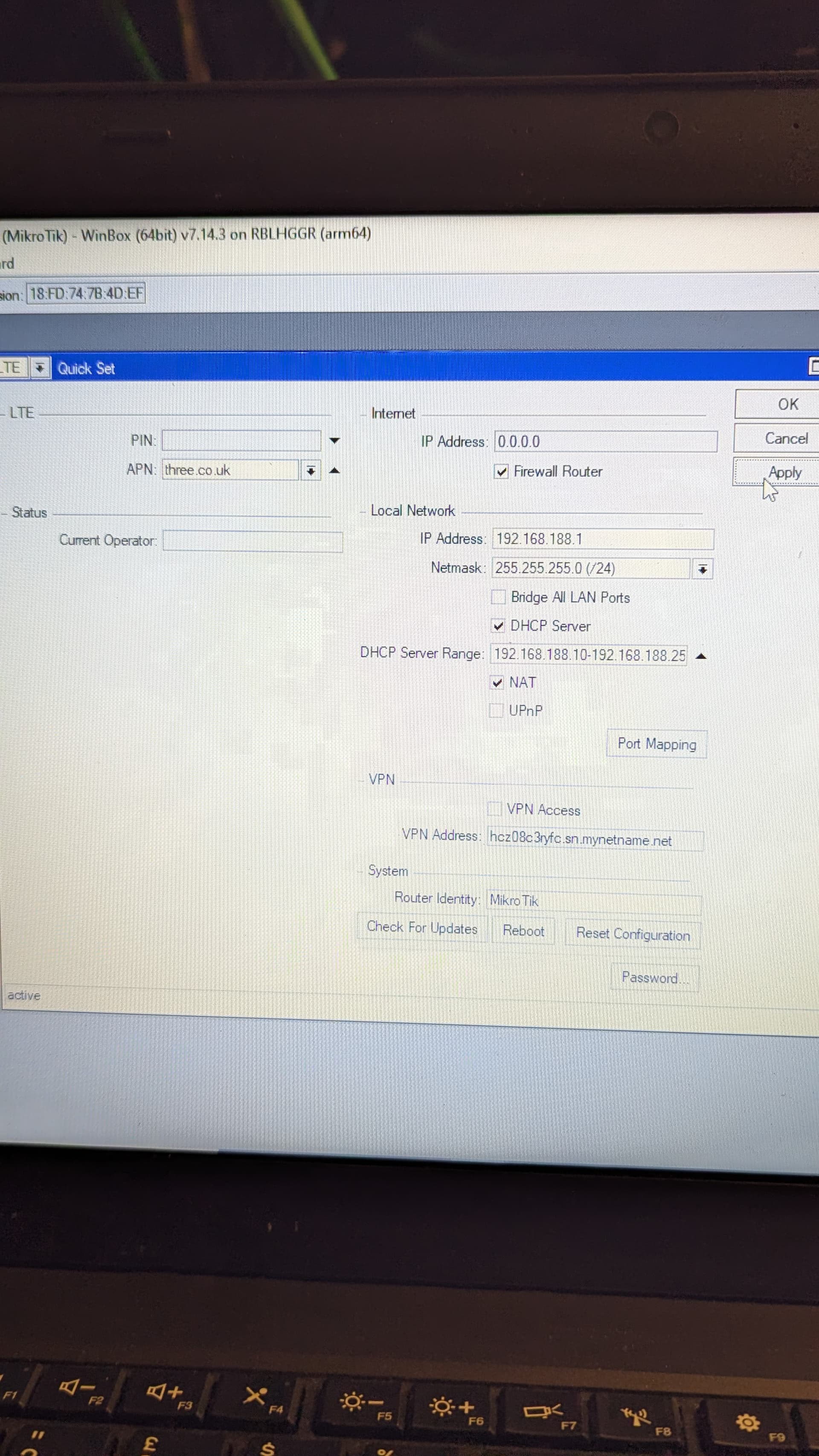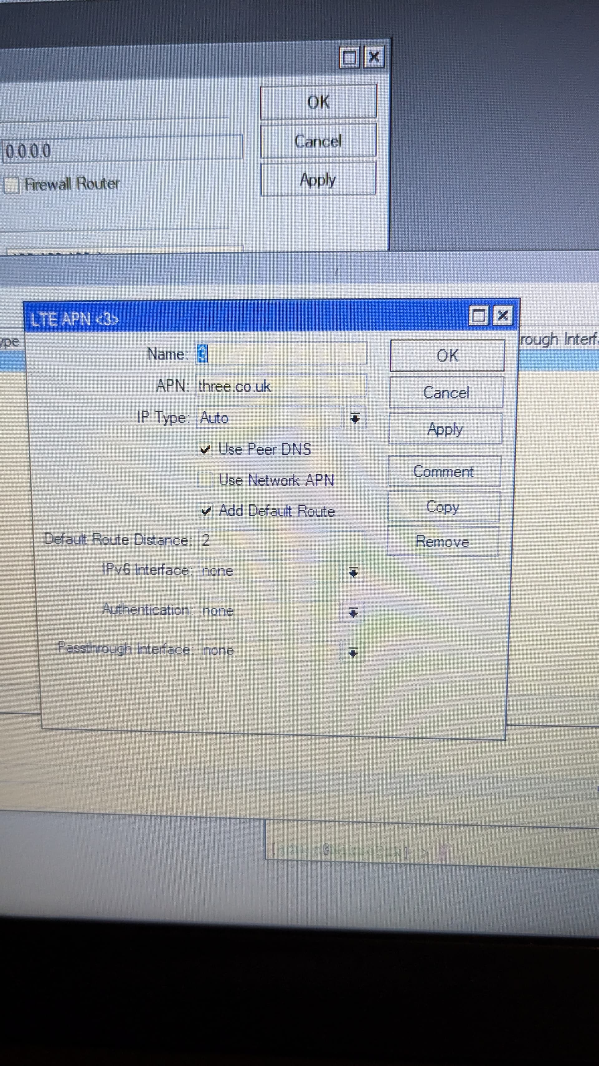 One SIM is on the EE network and the other is on the 3 network. I have the dish pointed at my nearest tower which is direct LOS and just under 1kM away.