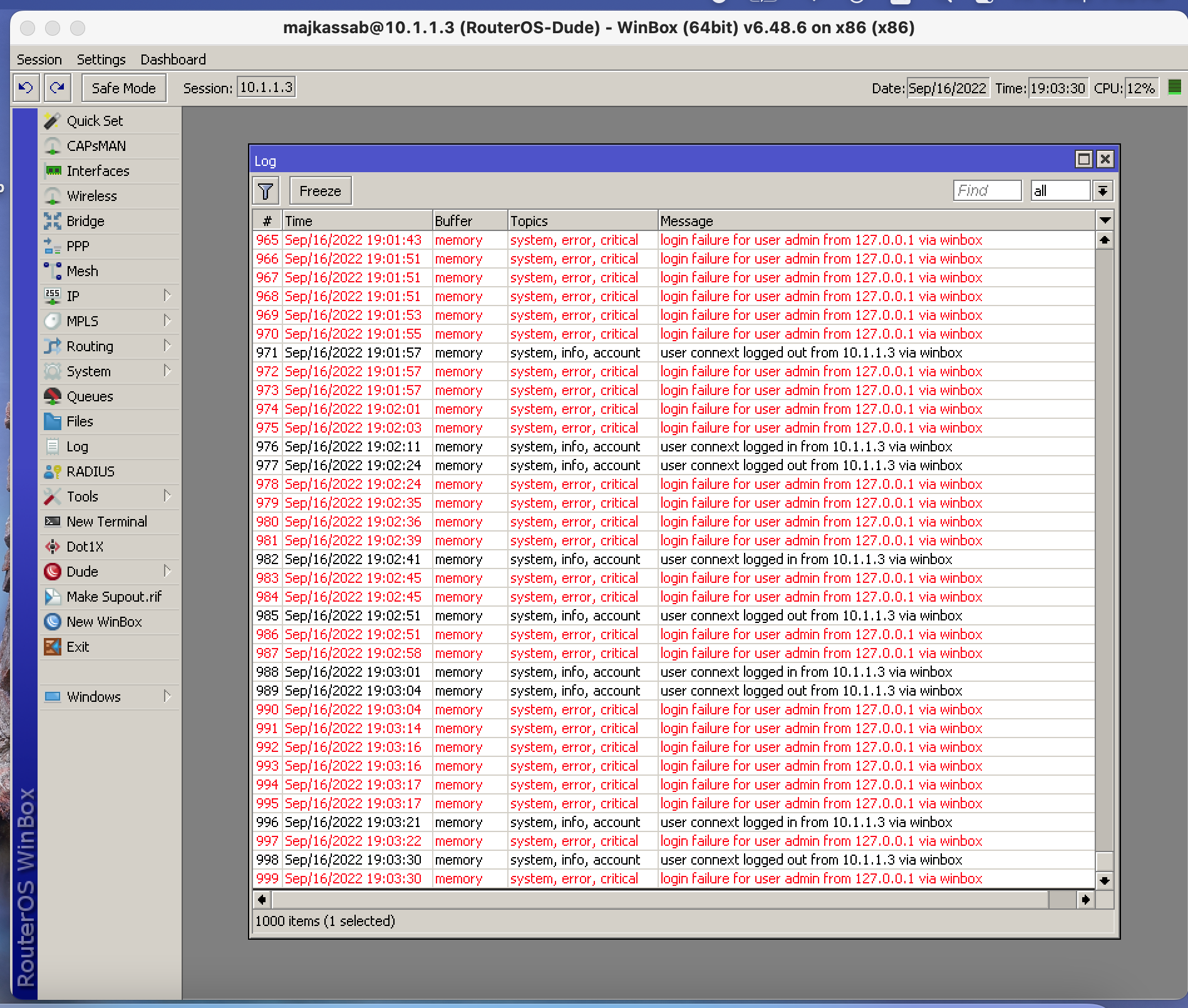 can anyone help me to figure why i get this error message " login failure for user admin from 127.0.0.1 via winbox "?