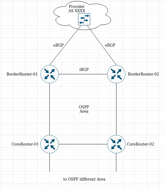 - you aggregate your network core effectively making your ABRs and Cores to appear as one for the data plane, which would involve VRRP, M-LAG, ECMP, and potentially other types of aggregation and balancing.