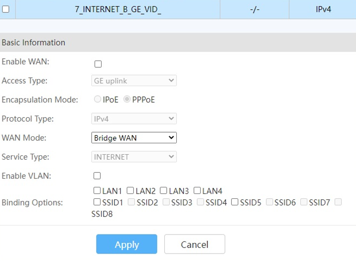 no MT connection with the operator's network/ONT relay using PPPoE without Vlan