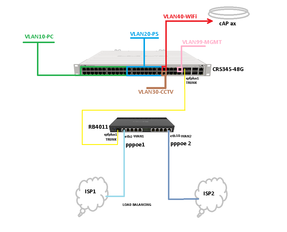 As for the ISP connections I did just a simple emulation using ether1 and ether10 but this is going to have 2 PPPoE connetions!