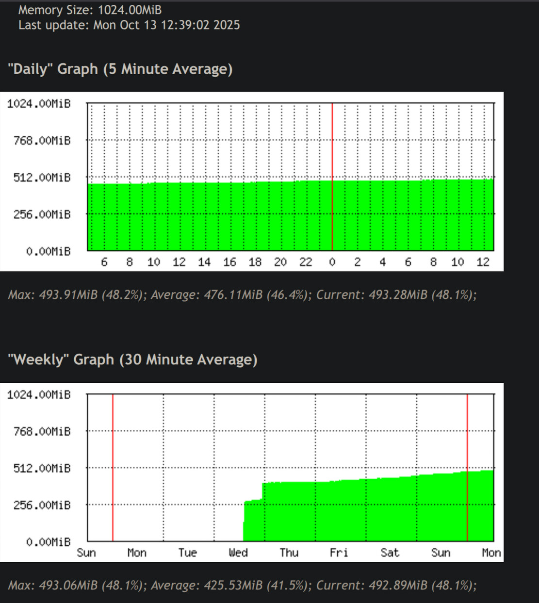 My traffic is low and constant, every day but the memory usage is growing constantly !
