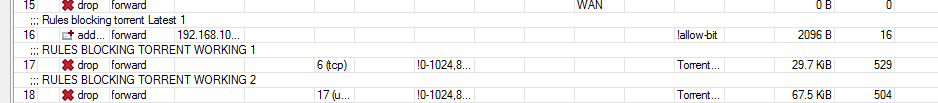 just a small remark. in second rule you have to change subnet to match your setup. the photo is after one hour trying to download random torrents.