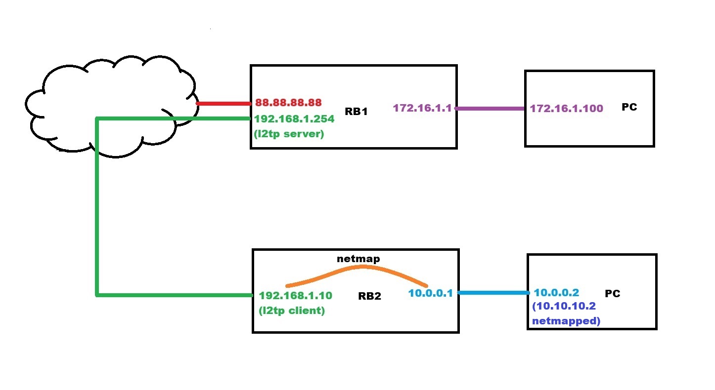 add action=netmap chain=dstnat dst-address=10.10.10.0/24 in-interface=l2tp to-addresses=10.0.0.0/24