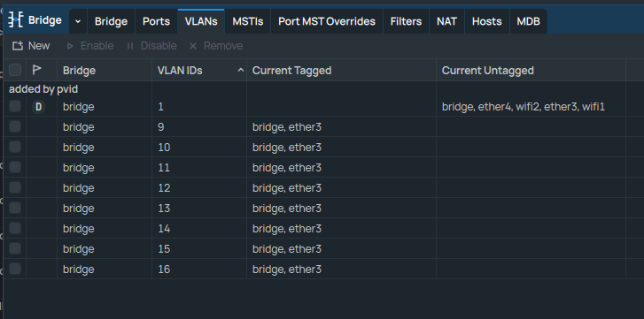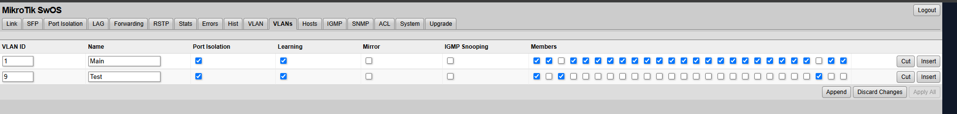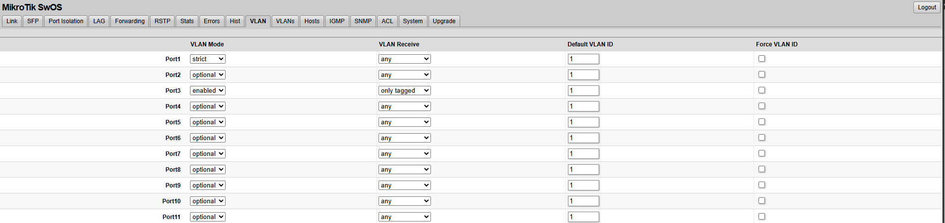 I also attached screenshots of the settings from the swos vlan and vlans tabs.