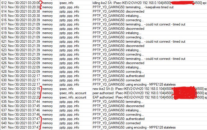 - how is traffic is routing now? I’m asking this because when the IPSec is down PPTP is not connecting (if connected it will got terminating) when the “IPSec is killing ike2 SA” before it’s get a “new ike2 SA (I)” for about 120 seconds PPTP is just trying to connect and if you remember I had a “IPsec-SA expired before finishing rekey” problem before you told me on another topic to set /ip ipsec proposal to pfs-group=none and it’s fixed that “IPsec-SA expired before finishing rekey” problem but still there is “IPSec is killing ike2 SA” and I got a feeling this is a server configuration problem (Linux Ubuntu StrongSwan).