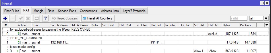 “for excluded-addresses bypassing the IPsec IKEV2 OVH20” dst-address-list=excluded-addresses