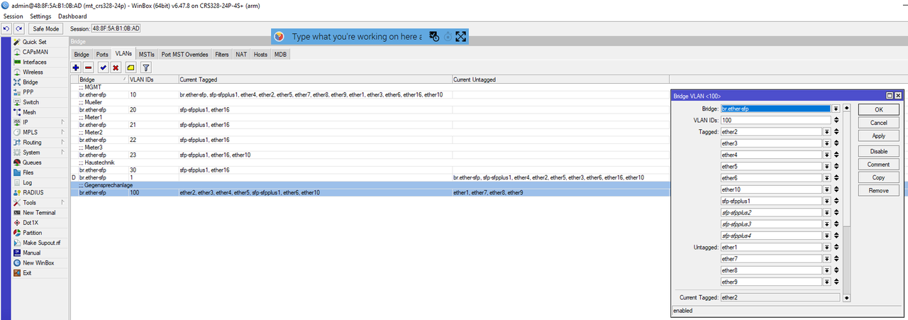 add bridge=br.ether-sfp comment=Gegensprechanlage\