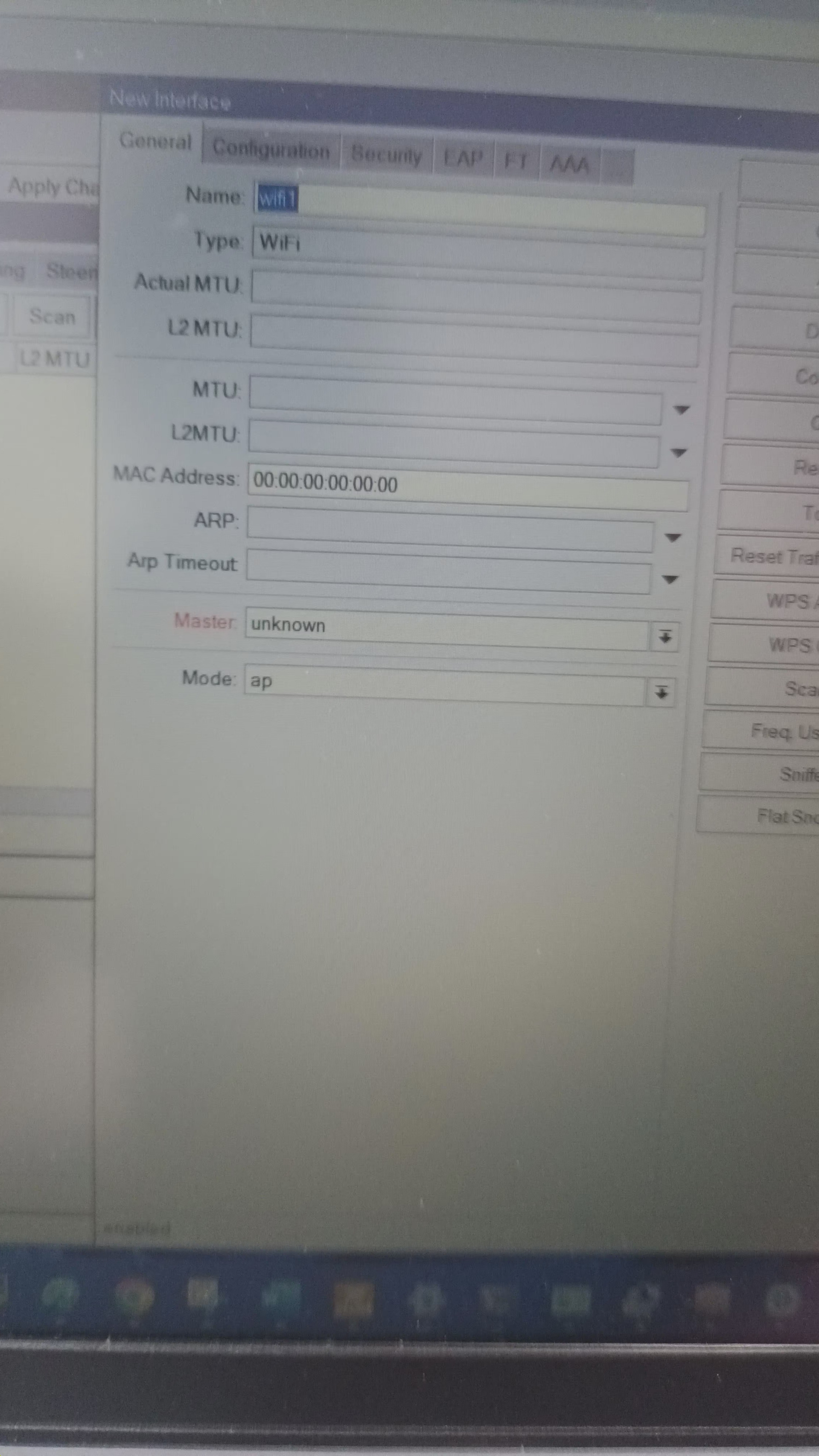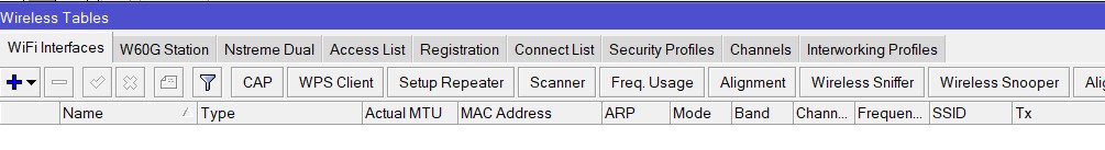 When I open **Wireless Tables → WiFi Interfaces** in Winbox, there is no wireless interface listed.